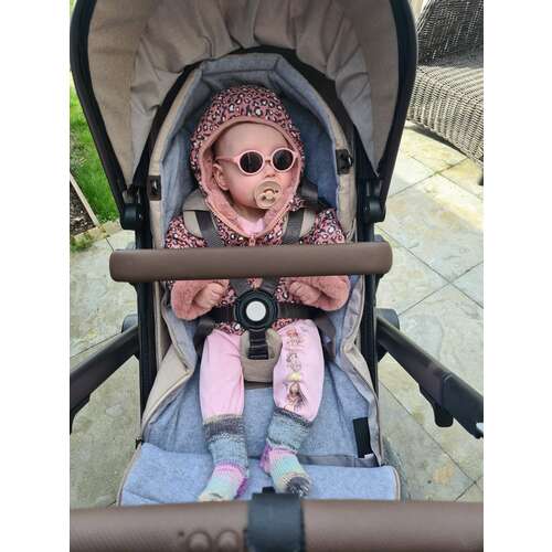 Heb toevallig gister een zonnebrilletje bij de prenatal gekocht, maar hij duikt nog steeds weg als de zon in de wagen komt. Weet niet goed wat ik nog meer kan doen, dus ik volg even!