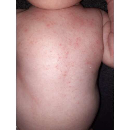 Mijn zoontje van 6 weekjes heeft uitslag op zijn borst, dit al voor de 2e keer. De vorige keer was het veel minder, de huisarts zei toen dat het baby acne was. Hij heeft ook wel wat 'pukkeltjes' op zijn kin en dat lijkt meer op baby acne. Herkent iemand dit?