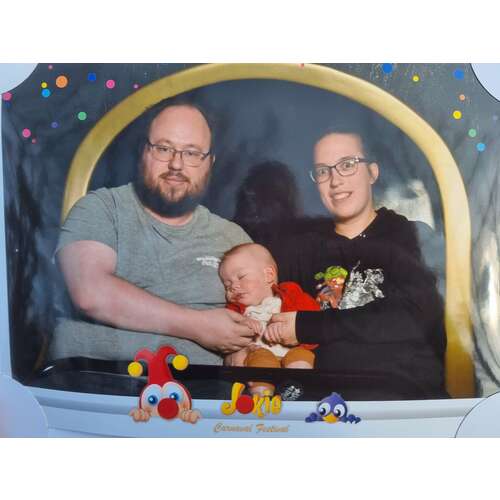 Mijn vriend is laatst met onze zoon naar de Efteling geweest. Hij is met hem in Droomvlucht en Carnaval Festival geweest. Daar mag hij op schoot.