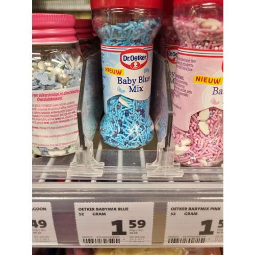 Ik heb een stuk of 30 Madeleines gebakken die in de vriezer liggen. Wij weten het geslacht niet wat echt kraamgebak klaar maken wat lastiger is. We willen hierbij slagroom met muisjes in de kleur doen.