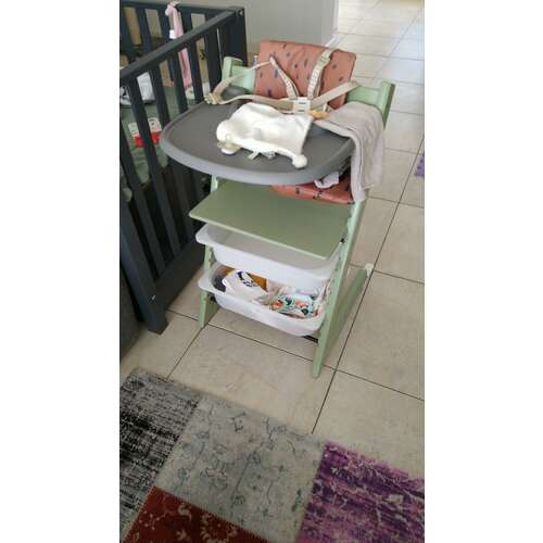 Voor de mensen die een Tripp trapp hebben de trofast bakken van de IKEA te gebruiken. Kei hendig voor opslag van de slabbers of speelgoed. Ik heb gekozen voor 2 ondiepe bakken omdat ik de diepe bak niet handig vind omdat je dan te veel moet gaan stapelen.