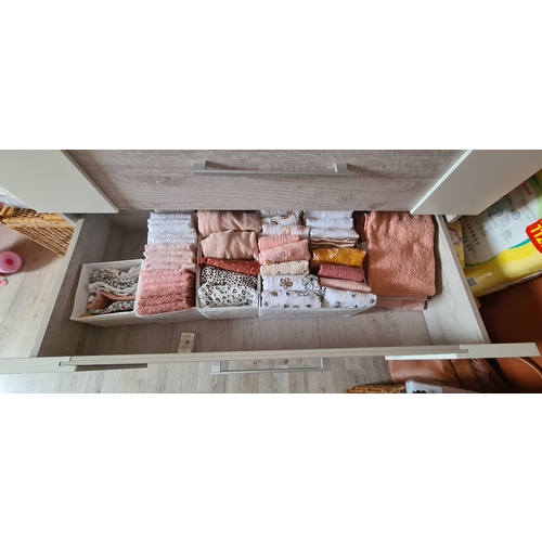 Nu is de middelste la voor de kleding van baby 2 en hebben we een handdoeken kast naast de commode gezet waarin nu de hydrofielen, slaapzakken, voorraadje wasspullen ed in ligt.