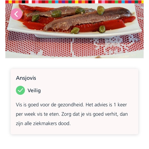 Behalve roofvissen zoals tonijn, paling en zwaardvis. Dit mag je ook verhit niet eten ivm zware metalen die in de vis kunnen zitten.