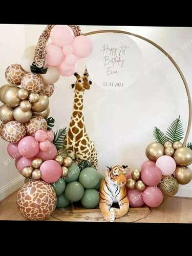 Wij gaan voor een zoo/jungle thema. Daar is hij helemaal fan van. We gaan trosjes groene ballonnen tegen het plafond aan laten gaan (helium - bij de action) en dan met bruine linten/crepe papier. Dan lijkt het net een boom, hangen we wat dieren erin. Verder wat slingers in het groen of met bladeren. Hema heeft hele leuke folieballonnen die kunnen staan. Die feestversiering vind ik sowieso een aanrader in een fysieke winkel.