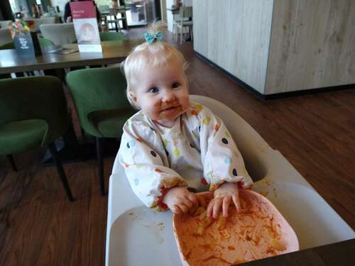 Het ligt er bij ons blijkbaar aan waar we gaan eten. Is er gewoon iets om haar heen waar ze mee kan spelen of haar interesse in heeft dan is t goed, zelfde vaak als we uit gaan lunchen l. Maar is t veel te druk en kan ze niet vrij haar gang gaan dan is t foute boel