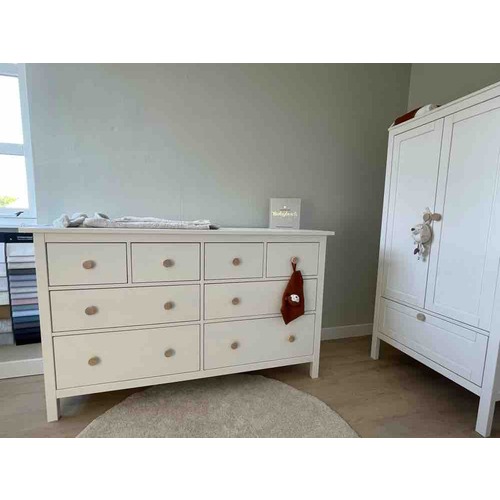 Wij hebben ook de hemnes 3 ladenkast. Die is even hoog als de meeste commodes in de babyzaken.
