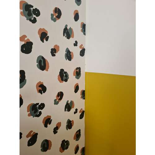 Ik heb op de kamer van mn zoontje een lambrisering van een beetje een felle okergeel en op 1 muur heb ik een panterprint behang. Niet echt hele felle kleuren, maar het is zeker geen pastel kamertje 😅