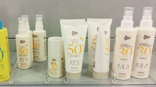 Ik heb hier ook gewoon etos eigen merk. Spf 50 voor kids, is ook sensitive.