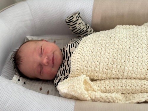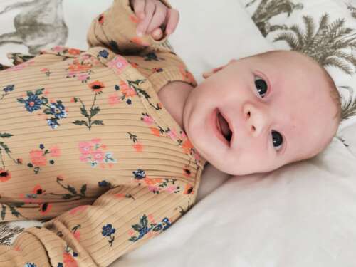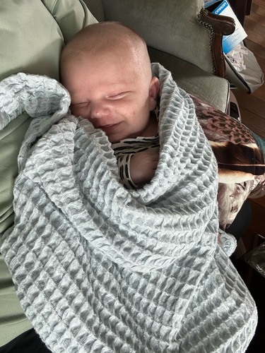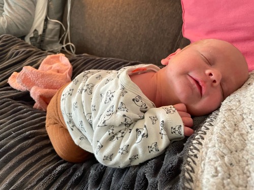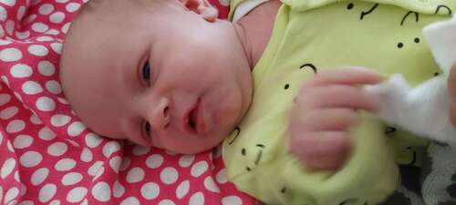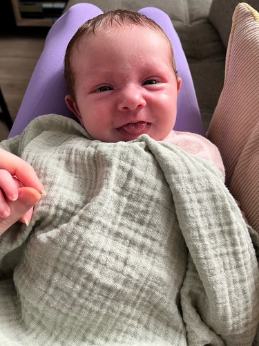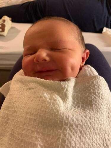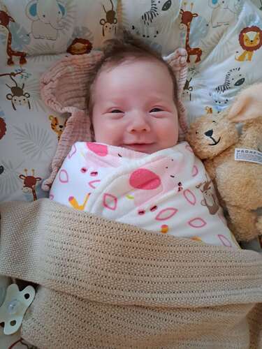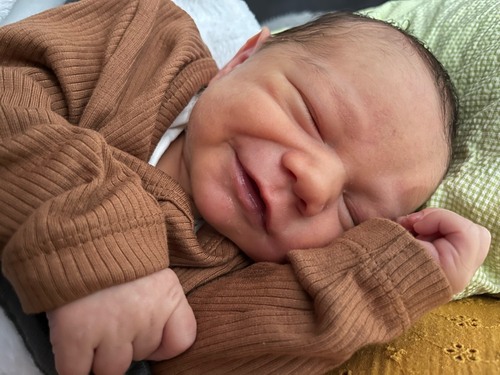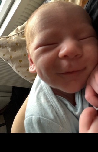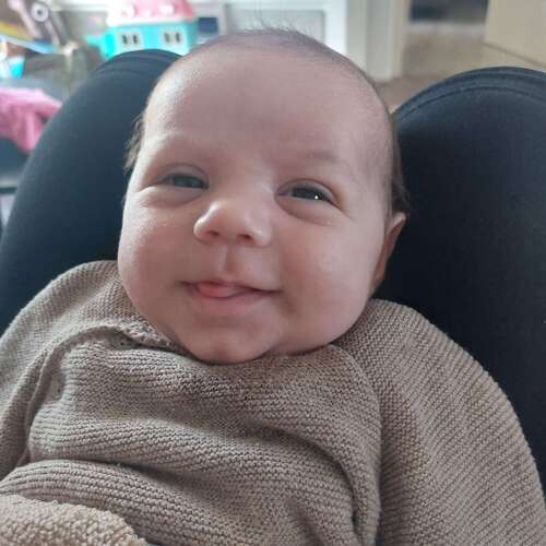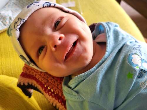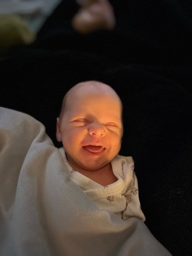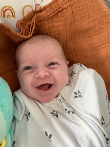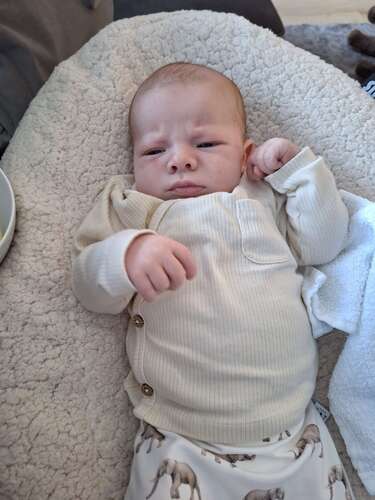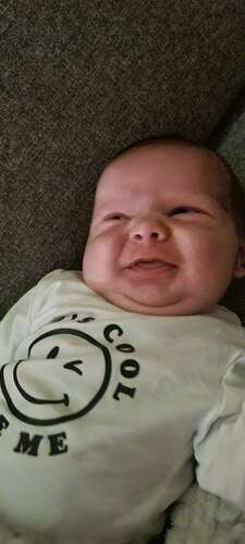 Zeker niet de 1e x dat hij lacht maar wel de 1e foto 😍 hier is mason 3 weken oud 🥰