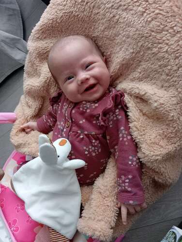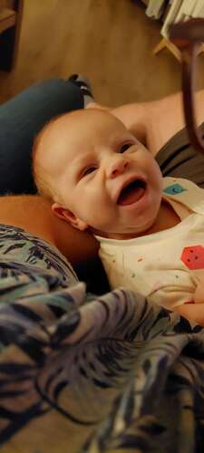 Niet een eerste echte lach ( die hebben we al wel ) maar deze is te mooi om niet te delen! Ik ben zo verliefd😍🩷