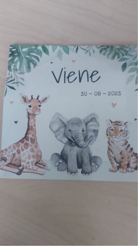 Dit is ons kaartje. Giraf staat voor de oudste, olifant voor de middelste (hadden ook een geboortekaartje met olifantjes bij haar) en het tijgertje staat voor de jongste.😊