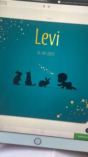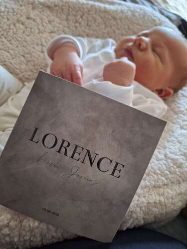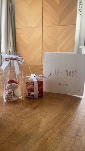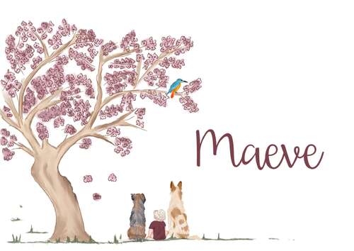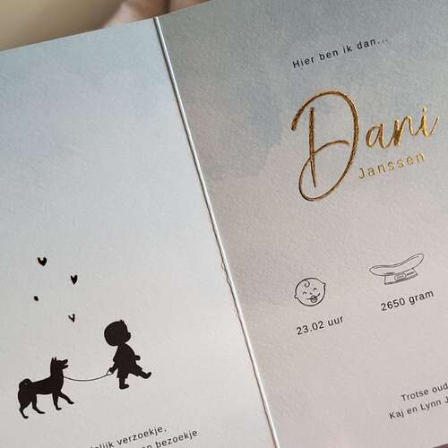 Geboortekaartje gemaakt door knapzakje. Met onze hondjes en ijsvogel die symbool staat voor mijn vader die tijdens mijn zwangerschap is overleden. 🩷 heel blij met het eindresultaat