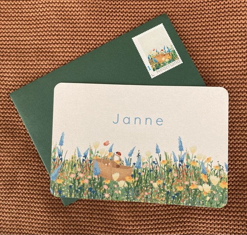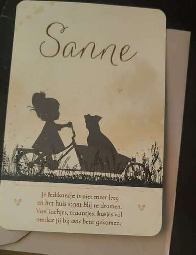 Heel mooi!!! Wij hadden ook bijna gekozen voor de naam Janne voor ons meisje! Uiteindelijk is het Mette geworden! Kaartje is gemaakt door mijn broertje. Het vlindertje staat voor onze overleden dochter 😞