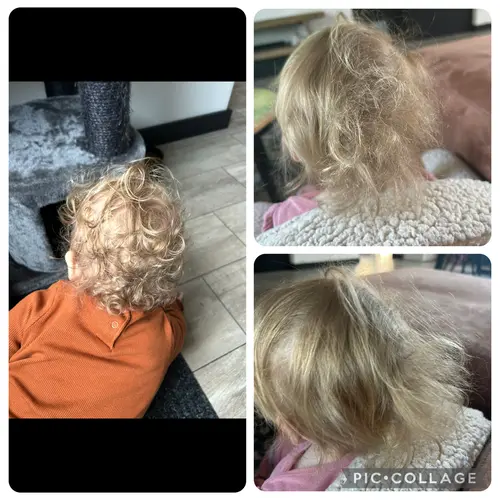 Wat ik doe is sochtends zn haartjes nat sprayen en dan gel erin van : as i am de born curly voor baby's en kinderen, hierna even met een kam erdoor heen en wat kneden.