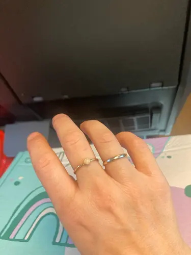 Dit is de mijne nu na 4 maanden ofzo. Weet niet of ie verkleurd is, hij is niet super wit ofzo maar dat is ie ook nooit geweest. Vind 鈥榤 zelf nog wel heel mooi. Ring zelf is zilver/gold plated niet echt goud omdat ik beetje gierig was, maar dat houdt de kwaliteit van de ring zelf natuurlijk wel langer goed. Dit is die van Vivellie trouwens.