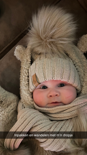 en verder een beetje kijken hoe koud het is. Ik doe meestal jasje, handschoentjes, sokjes, en bij dit vriesweer. Heb ik ook wollen beenwarmers voor in de draagdoek en een wintercover.