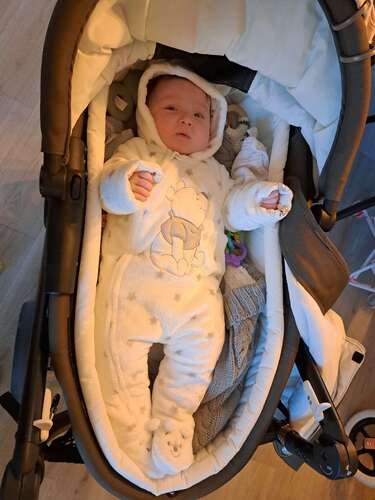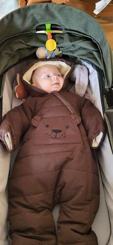 Wij hebben geïmproviseerd met laagjes😂. Romper lange mouwen, shirtje en truitje eroverheen, broekje met een maillot eronder (ook voor jongetjes erg handig in de winter) Daarover zijn slaapzak (tog 3) een dekentje en een soort bivakmuts van de Hema. Met de kap dicht was hij toen we hem uit de kinderwagen haalden lekker warm, maar niet te warm