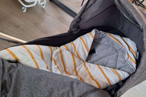 Hier zit dus ook een tuigje in en heb ik de wikkeldeken van de maxo cosi erin gedaan.