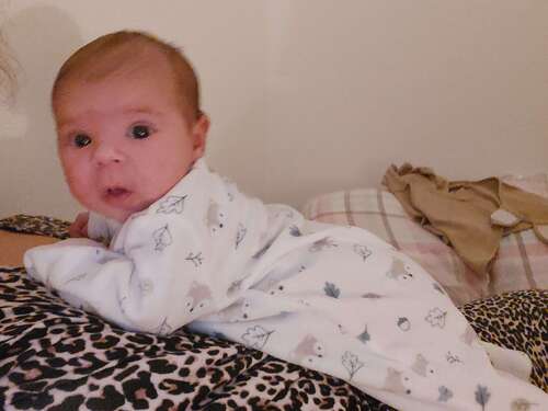 Ohh dit is helemaal niet erg he. Die van ons kon het toen ook helemaal niet. Vanaf 8 weken begon het te komen. En ze horen het pas echt goed te kunnen vamaf 3/4 maanden he