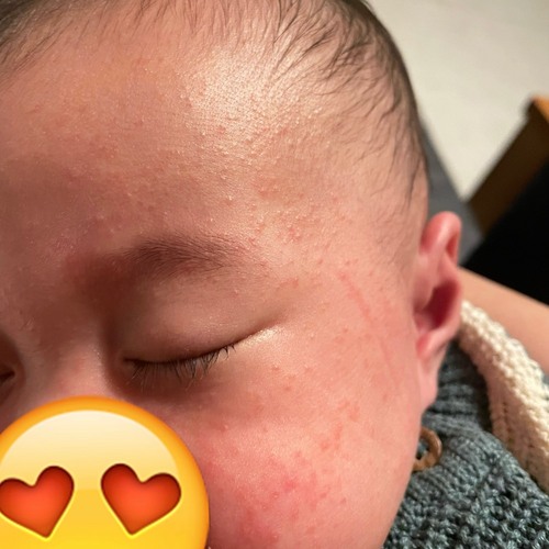 Onze dochter heeft dit gehad toen ze op 4 maand Nutrilon kreeg. Toch n allergische reactie. We zijn gewoon doorgegaan ermee en na een week ging t weg. Heb paar x per dag gesmeerd met shea butter
