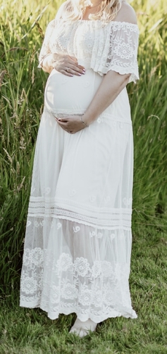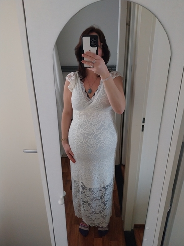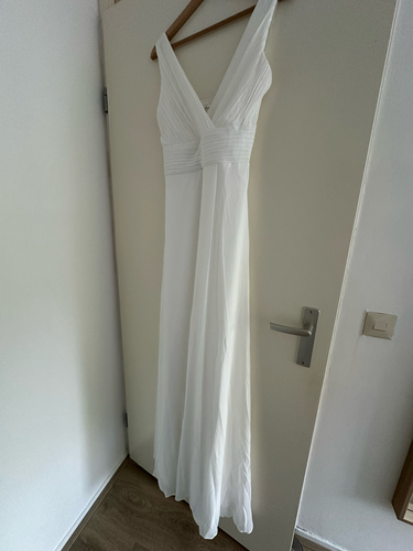 Ik heb nog een jurk in de aanbieding maat 42. (Of is dit tegen de forum regels om te delen?) Er is ruimte voor een groeiende buik. Uiteindelijk niet gedragen voor de bruiloft want voelde me er ongemakkelijk in. Te bruidsjurk achtig. Ben voor een witte maxi rok (over de buik gedragen) met een crop top blouse gegaan. 鈽猴笍