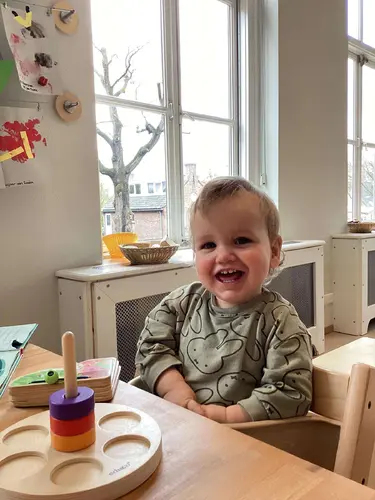 Schoolfotograaf kwam langs op het kdv. Hij lijkt zo groot en wijs hier🥹