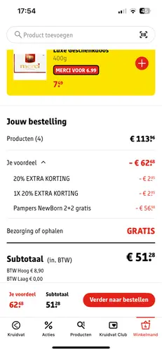 Bedankt voor de tip!! Super. Ik heb 2x pampers premium protection maat 3, 126 stuks besteld. Deze was al 2 voor 60 eu, en er ging 2x 20% af, waardoor ik uitkom op afgerond 0,20 cent per luier. Netjes 馃榿