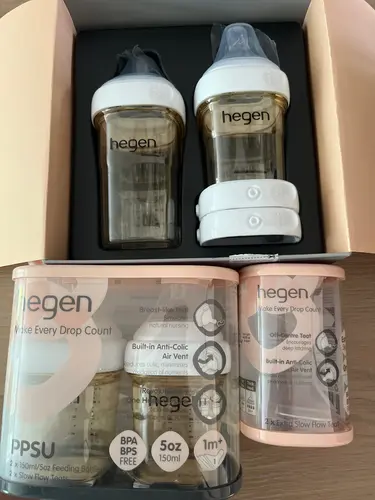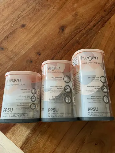 Ik heb ook die van Hegen! Mijn schoonzus gebruikt die van Hegen en vindt deze heel fijn. Het speentje past zich aan naar de mond van de baby zei ze en het materiaal is net als glas en plastic, maar het is veilig omdat er geen troep in zit en het niet breekt als ie valt. Ze kunnen ook in de vaatwasser. Mijn nichtje is nu 9 maand oud en gebruikt nog steeds het 150 ml flesje. Later kan je het opzetstuk vervangen door eentje met een rietje!
