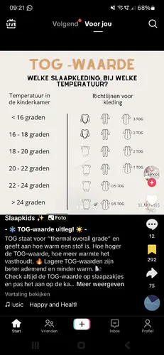 Bij ons op de kamer is het tussen de 16 en 18 graden en hij heeft ook een tog 3 van de Hema. Eronder doen we een romper en een box pakje. (Als het box pakje heel dik is gebruik ik wel een andere, maar anders gewoon een katoene box pakje)