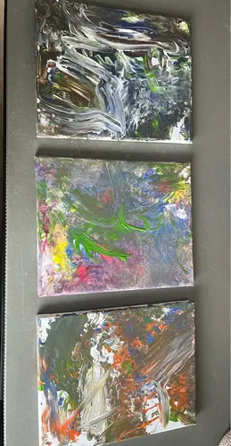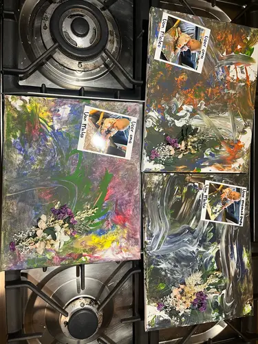 De linker voor onszelf en de 2 rechts voor de oma's. Ik heb voor alle 3 een foto dat hij bezig is met het 'schilderen' en die heb ik laten afdrukken op een iets kleiner formaat. Die plak ik erbij op en bij de Wibra kleine droog bloemetjes gehaald die doe ik ook ergens erbij op of in combi met de foto. Kan nog wel een foto sturen van het eindresultaat als je benieuwd bent. Ga er vandaag mee bezig als dat lukt en anders morgenochtend snel 😂
