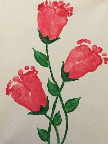 Met de voetjes vlinder maken met verf, handje met verf als boeket bloemen ...