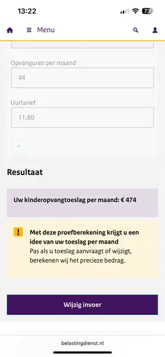 Op de site van onze opvang kan je ook een proefberekening maken. Dan rekenen ze ook met het tarief wat zij rekenen. Dat wat je terug krijgt van de belasting (bijv 96%) is maar tot een bepaald uurtarief! Onze kinderopvang zit daar bv boven en dan betaal je dus meer zelf. Maar dat verschilt echt per opvang.