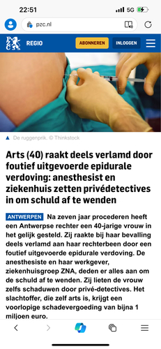 Een medische misser ja! En na overal kan wat mis gaan. Maar er wordt overal heel makkelijk geroepen dat een ruggenprik zo fijn is. En de risico's worden niet genoemd!
