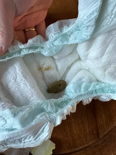 Hier ook dezelfde ontlasting. Ik doe nu in elk hapje wat olijfolie en geef pruim. Geen banaan meer gegeven. Ook leg ik hem om 22/23 u of in de nacht vaker aan als die wakker wordt ipv speen zodat die wat extra vocht binnen krijgt.