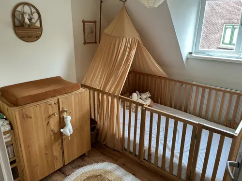 Ja! Wij hebben deze. Kon er zelf geen een vinden in NL die aan de veiligheidseisen voldeed (hekje hoog genoeg), maar deze vond ik op Etsy, en nog steeds superblij mee! Kostte even wat, met verzendkosten erbij, maar was het absoluut waard! Mijn zoontje slaapt ‘s nachts bij ons, maar ligt nu zijn dutje hierin te slapen. Dan kan ik hem in slaap voeden en eruit klimmen. Ideaal!