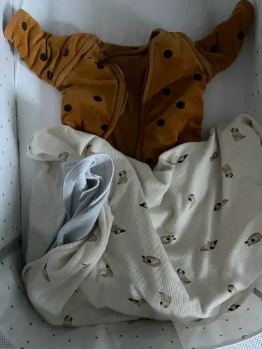 Ook verplaatst hij zich al door de co-sleeper heen waardoor een deken geen zin heeft, ligt er dan toch boven