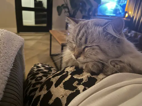 En mijn kat lag het liefste op of tegen mijn buik aan in mijn zwangerschap. Zij voelde het al heel vroeg aan, en was niet bij mij weg te slaan. Helaas heb ik haar net na mijn bevalling moeten laten inslapen ivm nierfalen. 😔 Ze is 10 jaar bij me geweest. Ze heeft Senn niet heel lang meegemaakt helaas, maar de dagen dat ze hem heeft meegemaakt was ze heel nieuwsgierig.
