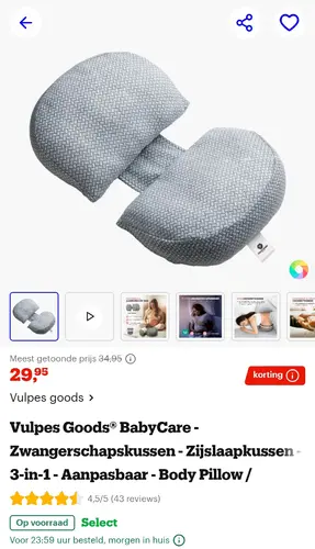 Laatst kwam ik dit kussen tegen op bol en dacht ik probeer het gewoon. Maar dit werkt voor mij echt super fijn. Doordat de kleine kussentjes schuin zijn kan mijn buik er erg fijn op liggen. Omdat ze verbonden zijn door een middenstukje verschuift het niet tijdens het slapen. Je kunt zo van zij naar zij draaien, 1x even goed positioneren na het draaien en ik kan heerlijk comfortabel verder slapen.
