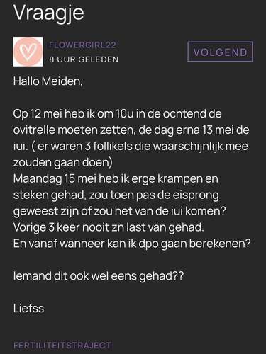 Heb idd zoals jou nog nooit zoveel pijn gehad na een iui. Ik kon moeilijk r ...