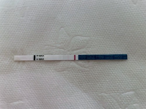Bij mij zagen de testen er zo uit op 12 en 13 dagen na Ovitrelle. Helaas was dit bij mij echt nog puur de Ovitrelle. Maar deze soort testen hoor je niet open te maken dus weet niet of het betrouwbaar is.