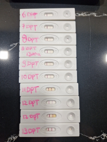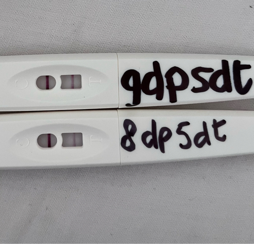 Ik had me terugplaatsing op 13 april.. en ik heb gezegd op de ovitrelle die was er al uit. Nee ik had niet beide testen op zelfde tijdstip gedaan, ik had 1 gedaan en toen even paar uur niet gedronken om me plas wat donkerder te krijgen en de andere 3uur later gedaan.
