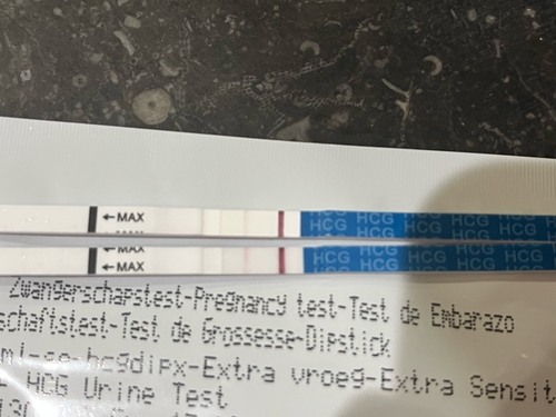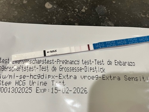 Ja als de test afloopt lijkt het me ovitrelle, als de test net zo donker is of donkerder dan ben je denk ik zwanger. Zeker spannend! Ben je al lang aan het proberen? Zal voor je duimen 😊