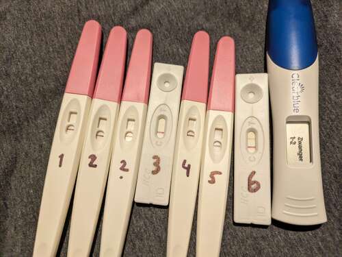 24-11 was mijn laatste menstruatie, heb normaal een stabiele cyclus maar begon op dag 25 te bloeden, dit was vermoedelijk een innestelingsbloeding. Vanaf 24-11 gerekend zou ik nu op 5,5 week moeten zitten. 2 weken na ovulatie begonnen de zwangerschapstesten langzaam op te lopen. Ik testte bijna dagelijks want ik ben een zenuwpees, daarom is de oploop waarschijnlijk niet zo sterk 😂 maar een week later plots negatief zonder bloed krampen etc vind ik heel vreemd. Ik kan gewoon niet geloven dat ik het kwijt zou zijn maar tegelijkertijd vind ik dit ook moeilijk verklaarbaar
