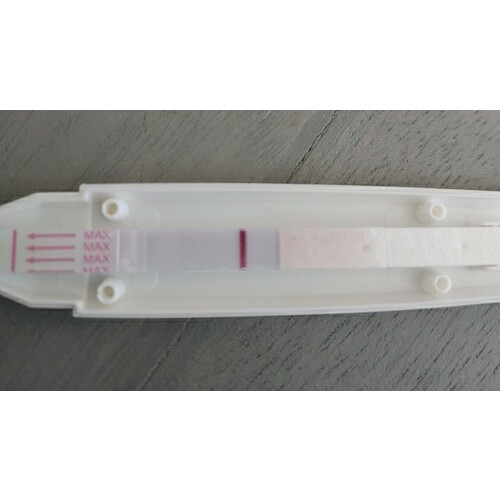 Ik probeer het op de foto te zetten maar niet te zien! Als ik het schuin hou dan zie ik een hele lichte streep!! Maar soms denk ik ook dat ik het me verbeeld 😂 morgenochtend nog maar eens testen met ochtendurine! 🙏🏻 jij ook een hele goede zwangerschap gewenst