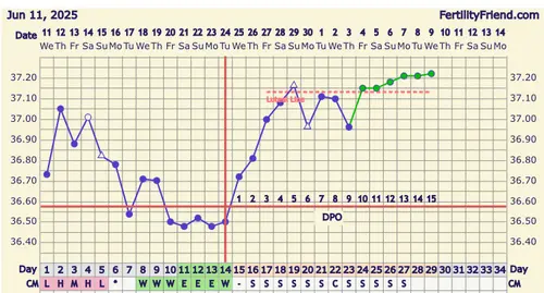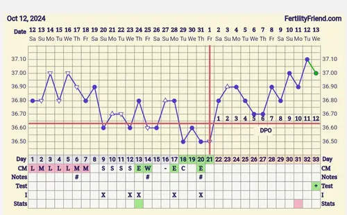 Tip; laat je niet gekmaken door die temperatuur! Ik heb besloten het na 14dpo, icm positieve test, niet meer te meten en het los te laten. ♥️