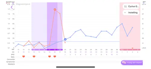 Hierbij mijn grafiek omdat ik het zelf wel interessant vond om te zien hoe er een uitzag bij zwangerschap.