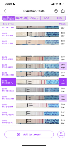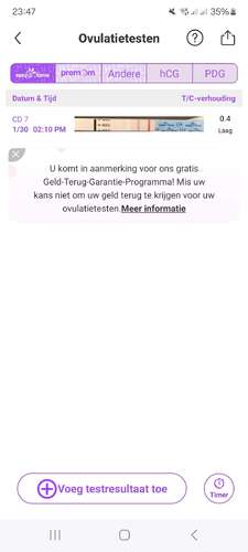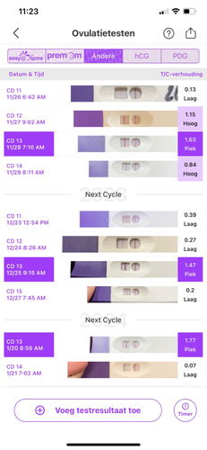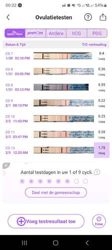 Heb een enorm rare cyclus van bijna 60 dagen en een rare bloeding achter de rug. Nu begonnen met ovulatietesten en voor het eerst met easy@home.