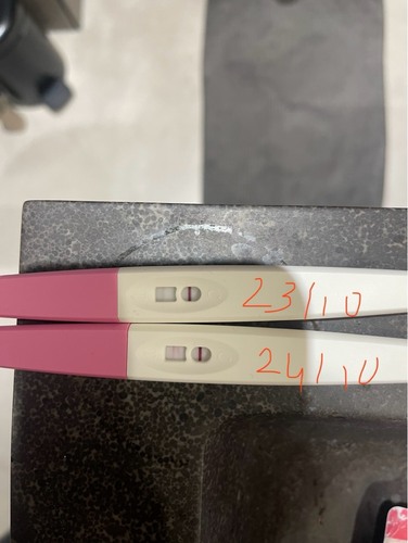 Dit is mijn eerste ronde met Ovitrelle. Ik heb de ovitrelle op 6okt gezet en en 12 dagen later en 14 dagen later een early gedaan (zie foto). Iemand van jullie ervaring met Ovitrelle en zwangerschapstesten? In de bijsluiter staat dat je TOT 10 dagen na het plaatsen van de spuit een foutieve zwangerschapstest kunt krijgen.