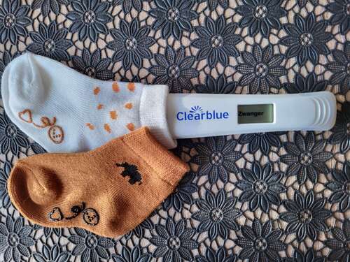 Het ergste is nog m’n man weet niet dat ik die Clearblue test heb gekocht. ...