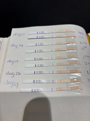 Ik gebruik nu trouwens de afgelopen 2 keer ovulatietesten en test dan elke dag rond 14:00. De 1e keer begon ik vlak na m’n menstruatie omdat ik geen idee had hoe m’n cyclus eruit zag. Ik heb wel ook een app maar als ik die had gevolgd had ik er elke keer naast gezeten. Ik heb toen wel m’n piek gevonden met de Action ovulatietesten. De 2e keer liepen de Action ovulatietesten wel een beetje op maar werden niet even donker of donkerder dan de controle streep, ik had al een digitale ovulatietest in huis van clearblue voor de zekerheid en toen ik het niet helemaal vertrouwde heb ik die erbij genomen en die gaf wel een vaste smilie terwijl die van de action negatief bleven.. Misschien een tip om een keer ook andere ovulatietesten te proberen.